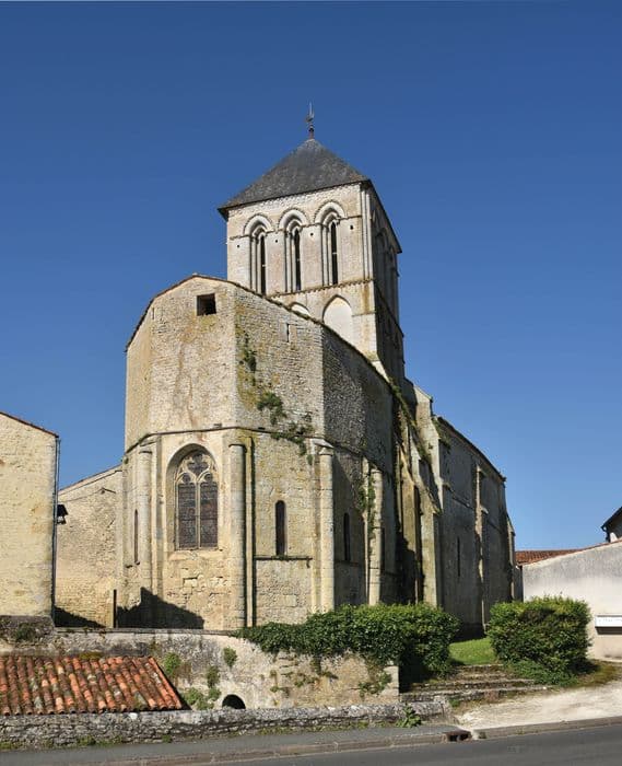 Monument du 12e siècle, à nef unique, couverte par des voûtes d'arêtes et dont la travée précédant le choeur est surmontée d'un clocher éclairé, sur chacune de ses faces, de trois baies à archivoltes ornées. L'abside, polygonale à l'extérieur, est circulaire à l'intérieur. La façade a conservé son décor d'arcs accompagnant la porte principale et de corniches à corbelets surmontant le portail.