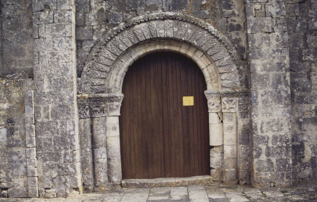 Une légende attribue à Roland, neveu de Charlemagne, la paternité de ce tertre. Le site aurait accueilli une maison-Dieu, occupée par les religieux de Saint-Romuald. De l'église romane ne subsistent que la façade occidentale et une petite fenêtre étroite sur le mur nord. Ruiné sans doute au cours de la guerre de Cent ans, le choeur fut rebâti au 15e siècle. Ruinée à nouveau au cours des guerres de Religion, l'église fut réédifiée une seconde fois mais en partie seulement, en relevant la partie occidentale des murs de la nef et en les couvrant d'une charpente. Cette nouvelle construction, plus étroite que la précédente, vient se plaquer contre la façade, sans ouvertures. L'élévation ouest est sommée d'un campanile qui pourrait être une adjonction du 18e siècle. Le portail comprend deux rouleaux de voussure en plein cintre reposant dans les piédroits sur deux colonnes à chapiteaux sculptés. Des ouvertures comblées conduisent à des salles basses voûtées inaccessibles (crypte ?).
