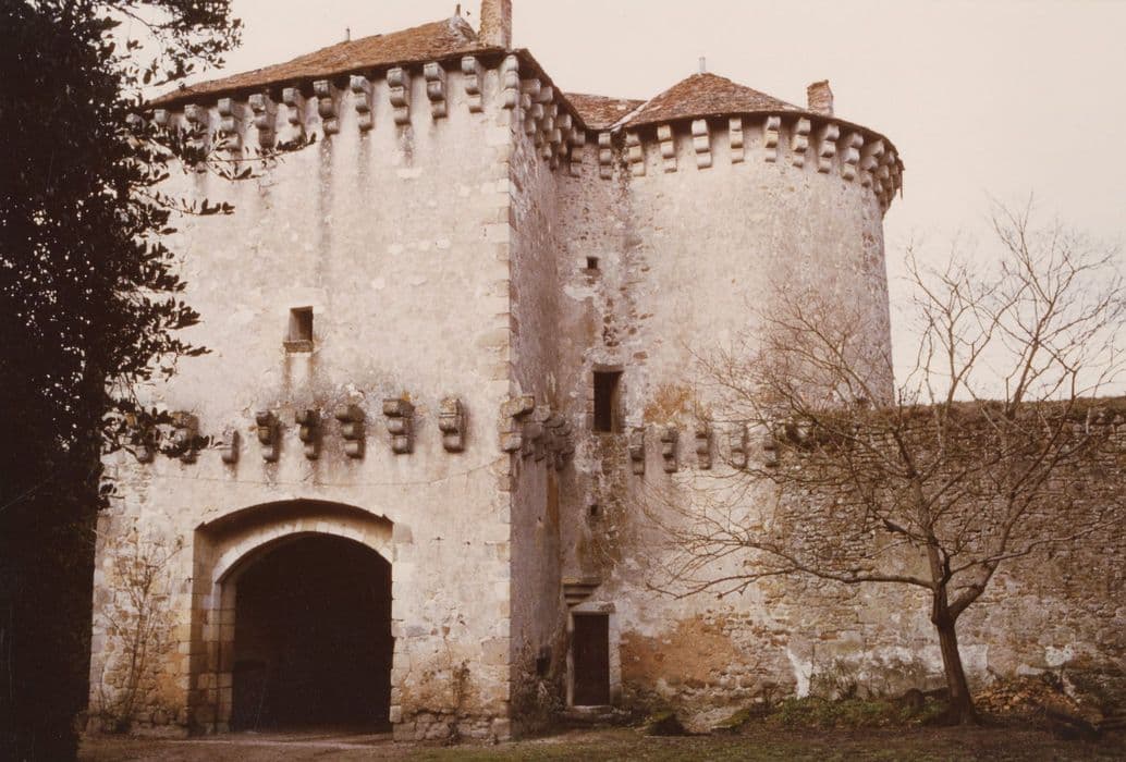 Les tours à mâchicoulis, les larges douves et la porte fortifiée flanquée de tours, précédant la cour d'honneur, constituent un remarquable exemple de l'architecture militaire du 15e siècle. L'édifice se présente comme un vaste rectangle flanqué de fortes tours aux angles et sur les courtines. Une première enceinte est percée d'une porte entre deux tours puissantes. Un pont permanent remplace le pont-levis. A l'intérieur, se trouve une chapelle à arceaux gothiques, dont les détails stylistiques appartiennent à la fin du 15e siècle. La porte, richement sculptée, est surmontée d'un écusson chargé d'un lion rampant et timbré d'une mitre et d'une crosse. Le pavage est en carreaux émaillés, figurant une rose divisée en de nombreux compartiments trilobés, encadrant des fleurs de lys, des crosses, des monogrammes.