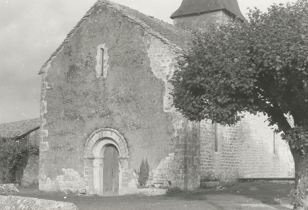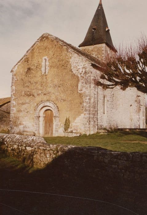 L'existence d'une église dès le Moyen-âge semble attestée par les nombreux sarcophages formant l'enclos devant la façade occidentale. Au milieu du 12e siècle et peut-être avant, elle dépendait de l'archiprêtré de Chaunay. L'édifice actuel a sans doute été bâti à la fin du 12e siècle. Les ouvertures de la partie sud furent modifiées au cours du 17e siècle. Le clocher date du 18e siècle. L'église se compose d'une nef à vaisseau unique de trois travées et d'un choeur formé d'une abside semi-circulaire masquée par un retable et précédée d'une travée droite. La nef et la travée droite sont couvertes d'une voûte en berceau brisé. Pour recevoir le poids de ces voûtes, les murs nord et sud de la nef ont été doublés intérieurement par de grandes arcades aveugles, solution caractéristique d'un groupe d'édifices du Poitou méridional. L'abside est couverte d'un cul de four. Elle est éclairée par une baie centrale soulignée, à l'intérieur comme à l'extérieur, par un arc supporté par des chapiteaux sculptés, seul élément de décor intérieur sculpté. La façade occidentale a pour seul ornement les chapiteaux à feuillages et à engoulant de la porte d'inspiration saintongeaise. Des traces de peinture murale ocre rouge apparaissent en partie basse des murs intérieurs de la nef.