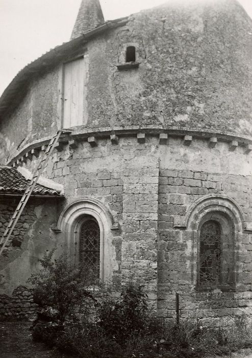 Eglise du 12e siècle, à l'exception des deux chapelles formant transept, ajoutées vers 1850. Voûte de pierre en berceau brisé. Cheour en cul de four. Arc triomphal sur colonnes engagées avec chapiteaux à volutes. Façade occidentale percée d'un portail plein cintre, avec vantail du 17e siècle. A gauche de la porte, table de la Loi en pierre datant de l'affectation au culte protestant au 16e siècle. Au-dessus de la corniche, sur les parties latérales et le chevet, élévation durant les guerres de Religion d'une galerie de défense avec archères. La partie inférieure de la façade a été aménagée à la même époque et est percée de deux archères. Clocher sur la croisée du transept.