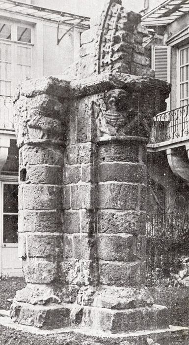Les restes du pilier du début du 12e siècle situé dans la cour : classement par arrêté du 11 mai 1945