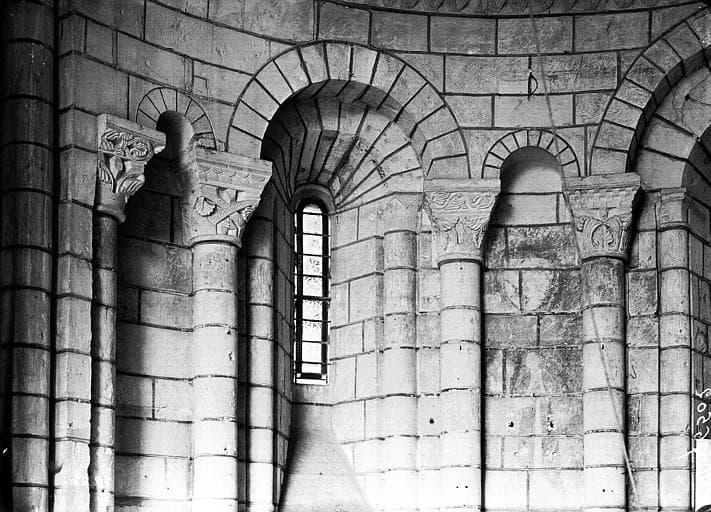 L'église a été en partie brûlée par un incendie en 1925. Le clocher surmonte un choeur voûté en coupole, le premier étant postérieur au second. L'abside est voûtée en cul de four. Les chapiteaux soutenant les arcs sont sculptés. Un fragment de peinture murale du 16e siècle subsistait dans le choeur (litre seigneuriale et saint tenant une palme). Intérieurement, ce dernier présente une alternance de deux colonnes jumelles, réunies par une petite arcature, et une grande arcature avec fenêtre.
