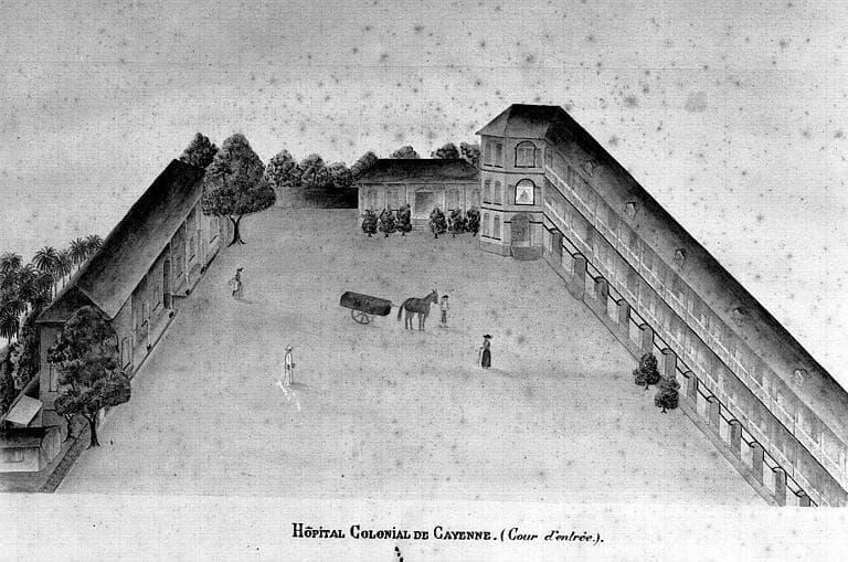 Un premier hôpital en bois est monté vers 1821, suite au transfert de l'hôpital datant de l'époque de la ville bastionnée. Constitué, au départ, uniquement de bâtiments en bois, c'est à partir de 1830-1850 que l'hôpital se dote progressivement de bâtiments typiques avec un noyau central maçonné en moellons, des épaisseurs de murs qui diminuent du rez-de-chaussée aux étages et des galeries de chaque côté, d'abord en bois puis en structure métallique. L'hôpital est complètement achevé à la fin du 19e siècle et comprend une enceinte, un hôpital militaire, une chapelle, une partie pour les déportés, un pavillon d'entrée, un bâtiment pour les malades, sous-officiers, soldats et colons, un bâtiment pour les officiers, la pharmacie, le logement du médecin-chef, les cuisines, la buanderie, les bains publics et un petit amphithéâtre.