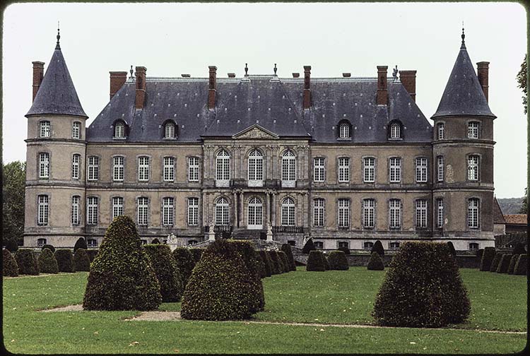Les façades et toitures du château, des deux pavillons d'entrée et des communs du 16e siècle ; les douves ; les groupes sculptés ; le grand escalier avec sa rampe en fer forgé à la jonction du corps principal et l'aile Est et les pièces suivantes avec leur décor : pièce située au rez-de-chaussée de la tour d'angle Sud-Est, petit salon doré au premier étage et la pièce contiguë, petit salon au rez-de-chaussée de la tour d'angle Sud-Ouest (cad. C 329, 331) : classement par arrêté du 27 juin 1983