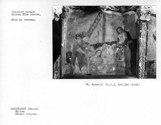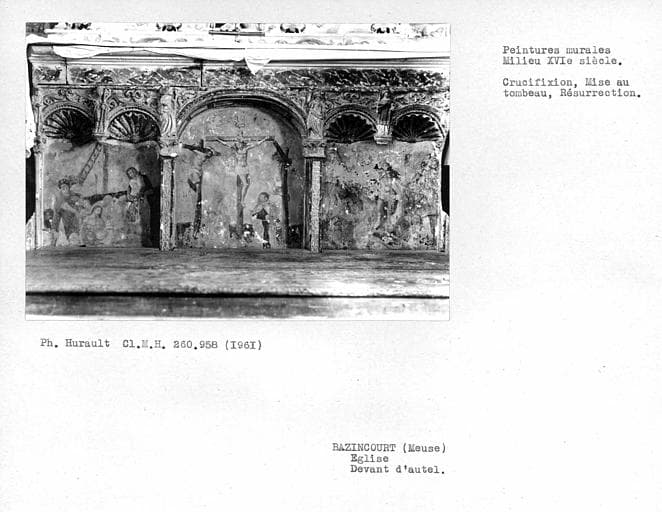 © Monuments historiques, 1992. Cette notice reprend intégralement les termes de l’arrêté de protection au titre des Monuments historiques. Elle répond à l’obligation réglementaire du ministère de la Culture d’établir la liste générale des immeubles protégés (art. R. 621-80 du Code du patrimoine). Elle est donc opposable et fait foi juridiquement. Aucune copie numérique ou papier ne sera fournie par courrier ni courriel. Le dossier de protection complet et l’arrêté sont consultables uniquement sur place, dans la salle de lecture de la Médiathèque du patrimoine et de la photographie (MPP), à Charenton-le-Pont (Val-de-Marne).