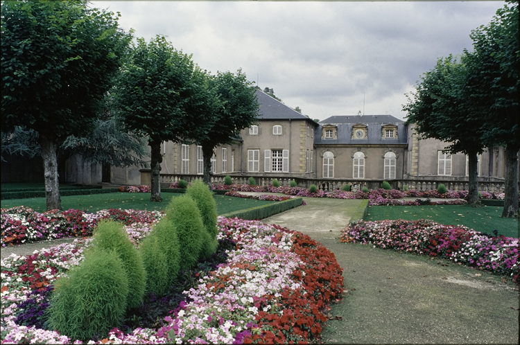 Palais construit de 1696 à 1700 par l'abbé Philippe Eberhardt de Lowenstein de Bavière, sous la direction de Pierre Bourdict. Les murs de clôture des jardins et terrasses sont confiés à Etienne Lastrasde. Au 18e siècle, le palais abbatial a été mis à la disposition de parlementaires messins pour de grandes fêtes. Campagnes de travaux à partir de 1745. Le palais est vendu comme bien national en 1792. En 1811, le département de la Moselle achète le château pour y installer son dépôt de mendicité. Travaux d'aménagement et d'agrandissement. En 1813, le palais sert d'hôpital militaire. En 1816, il devient caserne de cavalerie. En 1828, annexe de l'hospice Saint-Nicolas de Metz. La congrégation des Filles de la Charité de Strasbourg s'y installe en 1886.