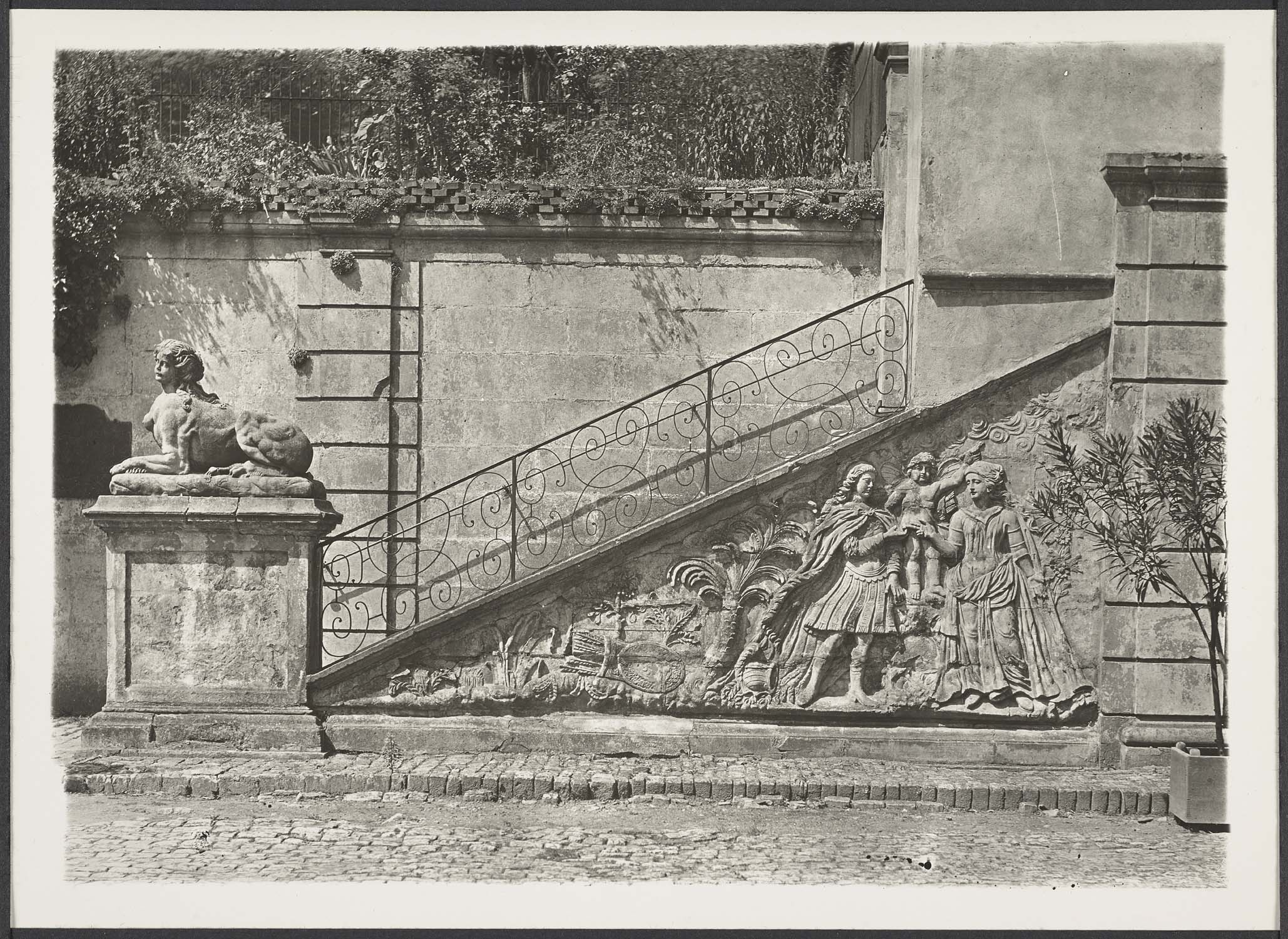 La porte d'entrée, les escaliers, les terrasses et les murs de soutènement décorés de fontaines : classement par arrêté du 21 septembre 1932 - Les parties anciennes du palais abbatial en totalité, le sol de la cour et le sol de ses jardins (cad. 1 143, cf plan annexé à l'arrêté) : classement par arrêté du 9 mai 2006