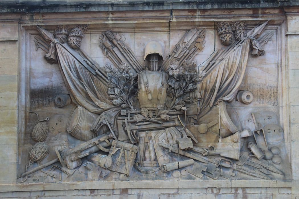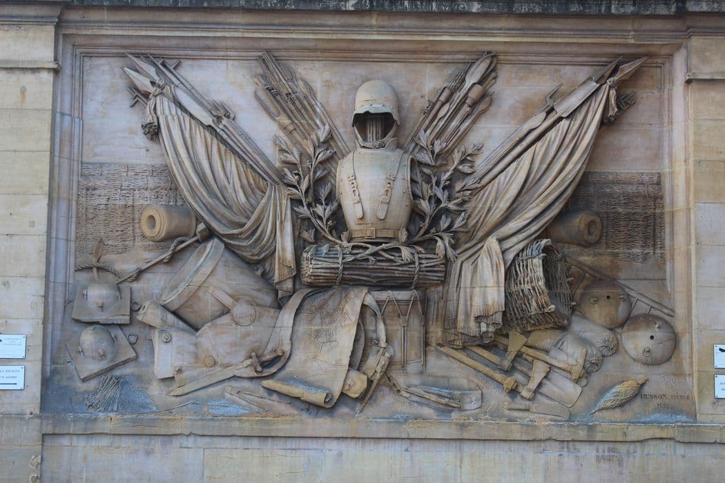 Trophées en haut-relief des bâtiments c et f : inscription par arrêté du 24 octobre 1929