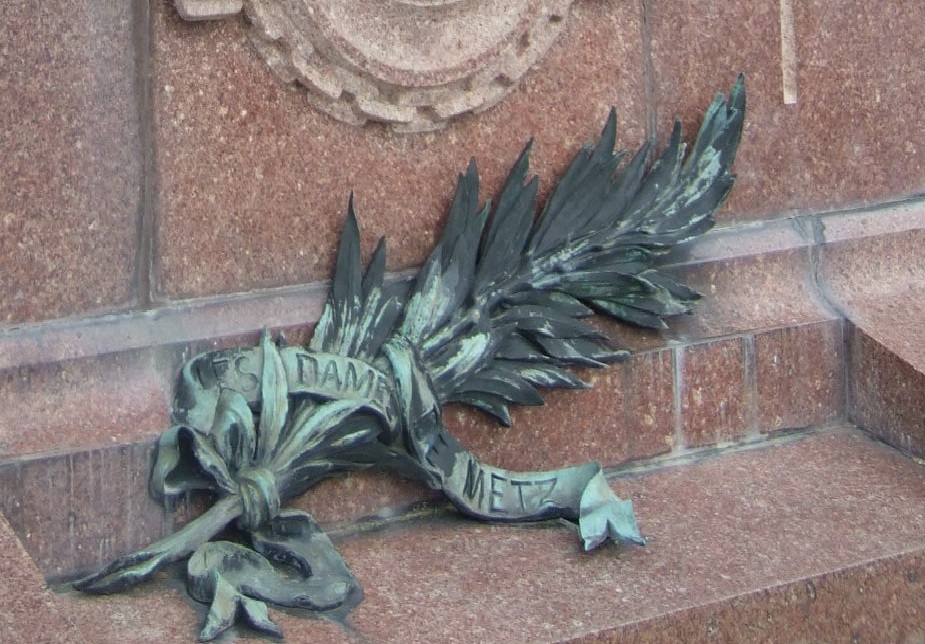 Vol entre le 26 et le 28/08/2021 de la statue de l’allégorie de la Lorraine, datant de 1908 et due au sculpteur Emmanuel Hannaux ainsi que d'une palme ornant le soubassement du monument. Ces deux éléments en bronze étaient fixée au niveau de la base du monument :
