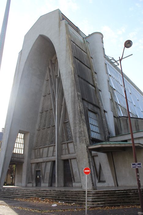 Eglise construite en béton armé par l'architecte parisien Roger-Henri Expert, en collaboration avec l'architecte messin Théophile Dedun. Les travaux, commencés en 1937, sont interrompus par la guerre et ne reprennent qu'en 1950 ; l'église est achevée en 1954. L'architecture en carène renversée s'arrondit en une abside semi-circulaire que flanquent trois absidioles basses. Seize piliers en béton décoffré, inclinés à 9°, se rejoignent par couples. Les vitraux-claustra, posés en 1953, sont l'oeuvre du peintre Nicolas Untersteller ; les thèmes illustrés sont la vie de Sainte-Thérèse et les principales activités de la région. La flèche date de 1963