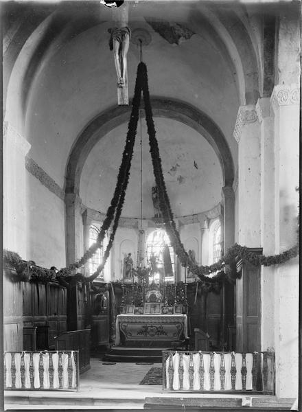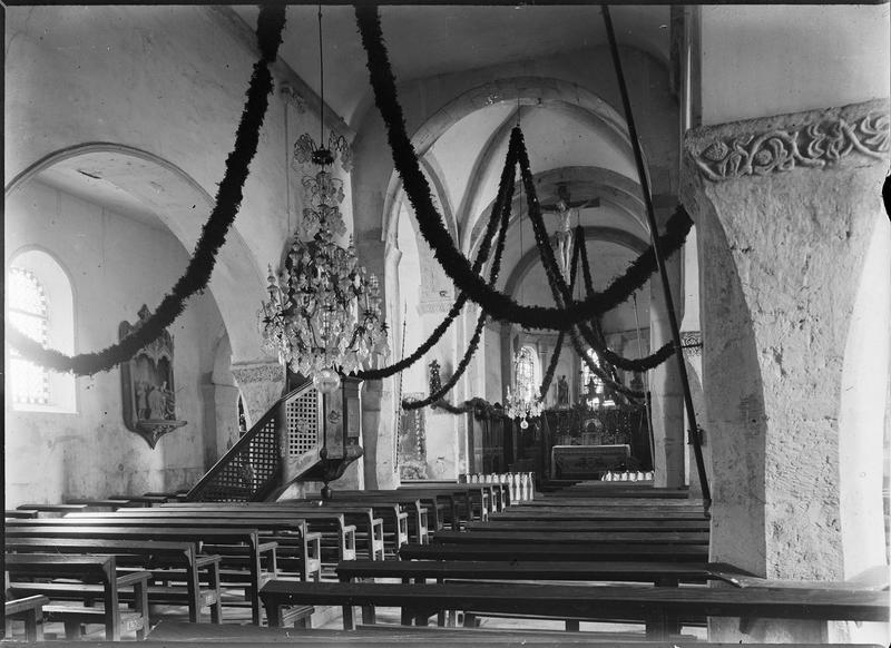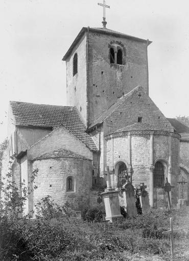 Edifice fondé au 12ème siècle qui se compose d'une nef de cinq travées avec bas-côtés, d'un transept saillant, d'un choeur voûté, d'un cul-de-four et de deux absidioles. Modification de l'église primitive au milieu du 18ème siècle, comprenant un agrandissement des fenêtres des bas-côtés, la suppression des arêtes de piliers, et le blanchiment des murs. Travaux de restauration en 1911 et 1925.