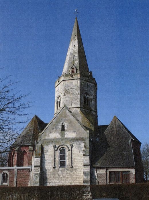 Cette église est attestée dès le 12ème siècle, comme en témoignent les soubassements en grès ferrugineux, caractéristiques de cette région de la Flandre et de cette époque. Au 16ème siècle, l'édifice est transformé en hallekerque : nef centrale rehaussée et adjonction de deux collatéraux. A la fin du 19ème siècle, un porche est ajouté ainsi quune sacristie. A l'intérieur, le mobilier est mis au goût du jour par l'ébéniste Patteyn et, pour les vitraux, le verrier Haussaire.