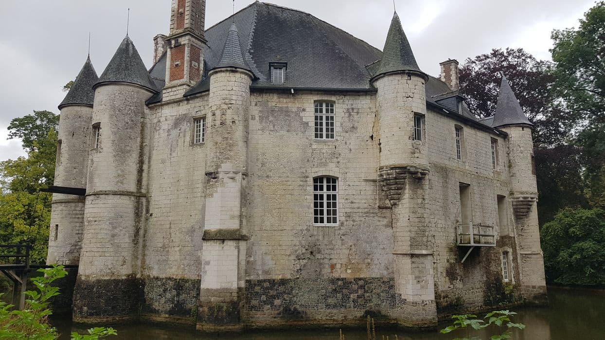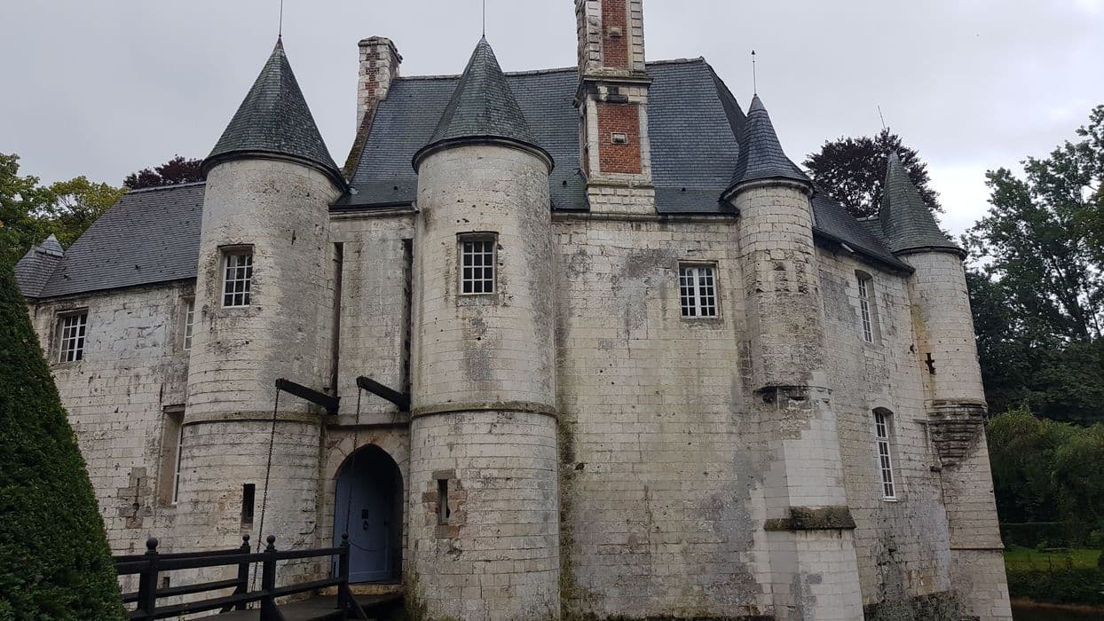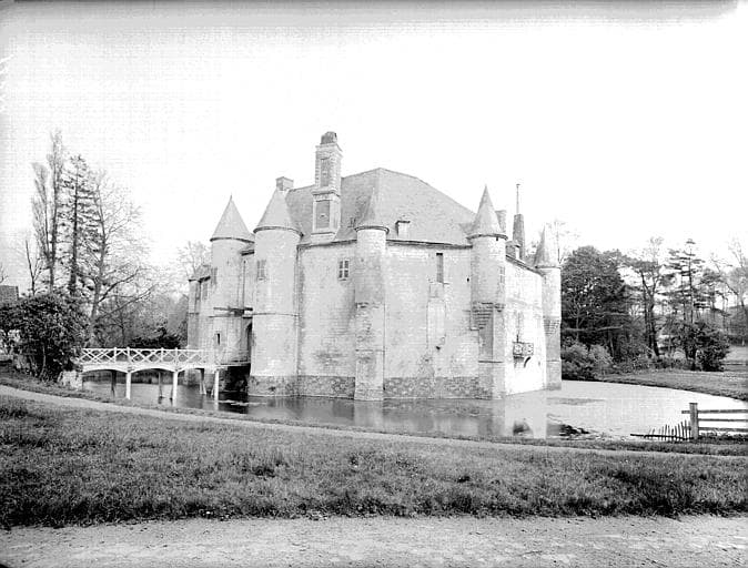 L'histoire du château est connue à partir de 1329. Il s'agit d'un petit édifice formant enceinte pouvant résister aux pilleurs et mercenaires. De plan circulaire ramassé, chaque angle est flanqué d'une tour, tourelle ou contrefort. Entouré par une double douve en eau, l'accès s'effectue par un pont-levis dont le mécanisme est toujours en place. Au 18e siècle, l'édifice est transformé en château de plaisance, avec ouverture au sud, percement des façades, création d'une terrasse surplombant la douve. L'intérieur a été transformé au 19e siècle et les dispositions défensives ont disparu, hormis les ouvertures de tir de la tour nord. Des bâtiments annexes subsistent, comme la ferme et une maison.