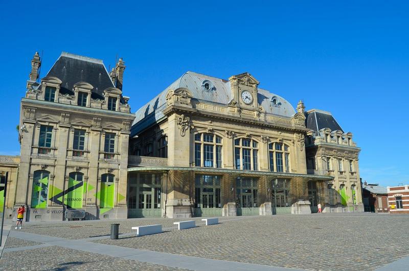 Cette gare de style classique a été construite pour la Compagnie des chemins de fer du Nord en 1902 par les architectes Ligny, Aumont et Vainet. La partie centrale de la gare, endommagée pendant la Deuxième Guerre mondiale, a été remise en état en 1948.