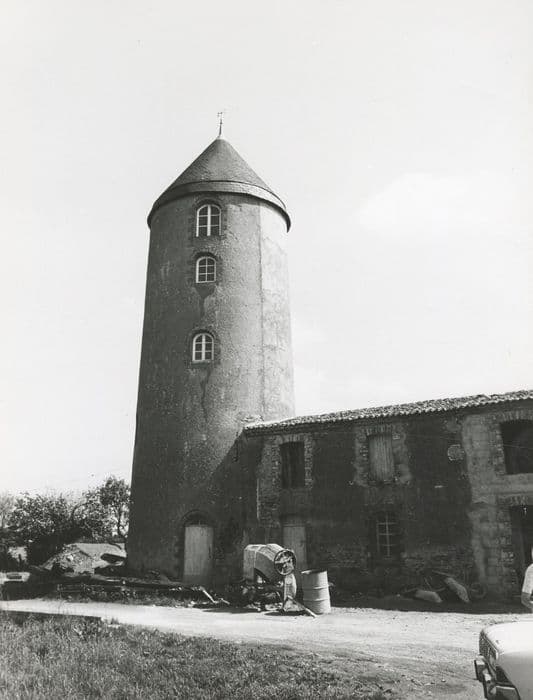 Construit entre 1834 et 1850, par son propriétaire, Pierre Godefroy, à quelques mètres au sud d'un vieux moulin de la fin du 18e siècle, ce moulin-tour fonctionna au moins jusqu'en 1865 avec des ailes à voiles qui n'entraînaient qu'une seule paire de meules. Dans la décennie suivante, probablement, sa tour fut rehaussée de deux étages, et il fut équipé d'ailes Berton et de trois paires de meules. Son activité meunière s'arrête peu après le guerre 1939-1945, les ailes sont alors démontées. Original par sa hauteur, le moulin compte quatre étages, il est couvert d'un toit conique en ardoise. Les fenêtres, à arcs en plein cintre en brique, s'organisent en deux travées diamétralement opposées, l'une au nord-ouest, l'autre au sud-est. Au niveau du troisième étage se trouve une petite niche surmontée d'une croix en brique qui devait contenir une statue de saint protecteur. Bien que les ailes et la tête de l'arbre aient été supprimés vers 1950, tous les mécanismes internes sont en place.