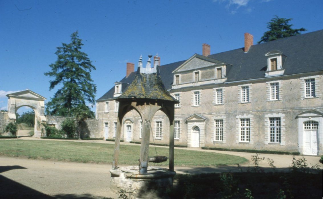 Le porche d'entrée ; les façades et les toitures du logis abbatial ; le puits ; le vestibule avec l'escalier ; les pièces suivantes avec leur décor : le grand salon et la salle à manger au rez-de-chaussée, les sept chambres au premier étage ; le pont sur la rivière de la Belle Hoirie (cad. A 234) : classement par arrêté du 27 juin 1983 ; Façades et toitures des communs, ainsi que le pigeonnier (cad. A 232) : inscription par arrêté du 27 juin 1983