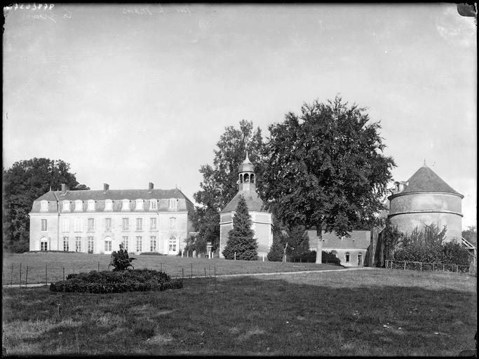 Façades et toitures du château, des communs, des écuries et de la chapelle polygonale ; escalier avec sa rampe en fer forgé ; salle à manger et deux salons du rez-de-chaussée avec leur décor ; fuye (cad. B 55) : inscription par arrêté du 3 mai 1974