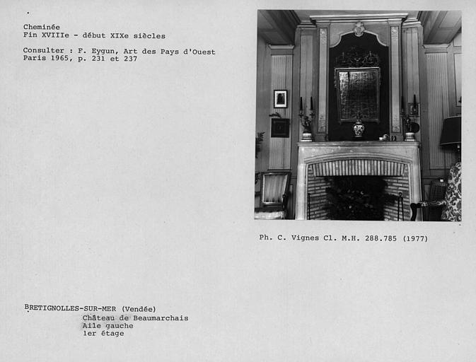 Les façades et toitures du château ; la cheminée se trouvant au rez-de-chaussée dans le salon ouest (cad. D 419) : inscription par arrêté du 27 juin 1962