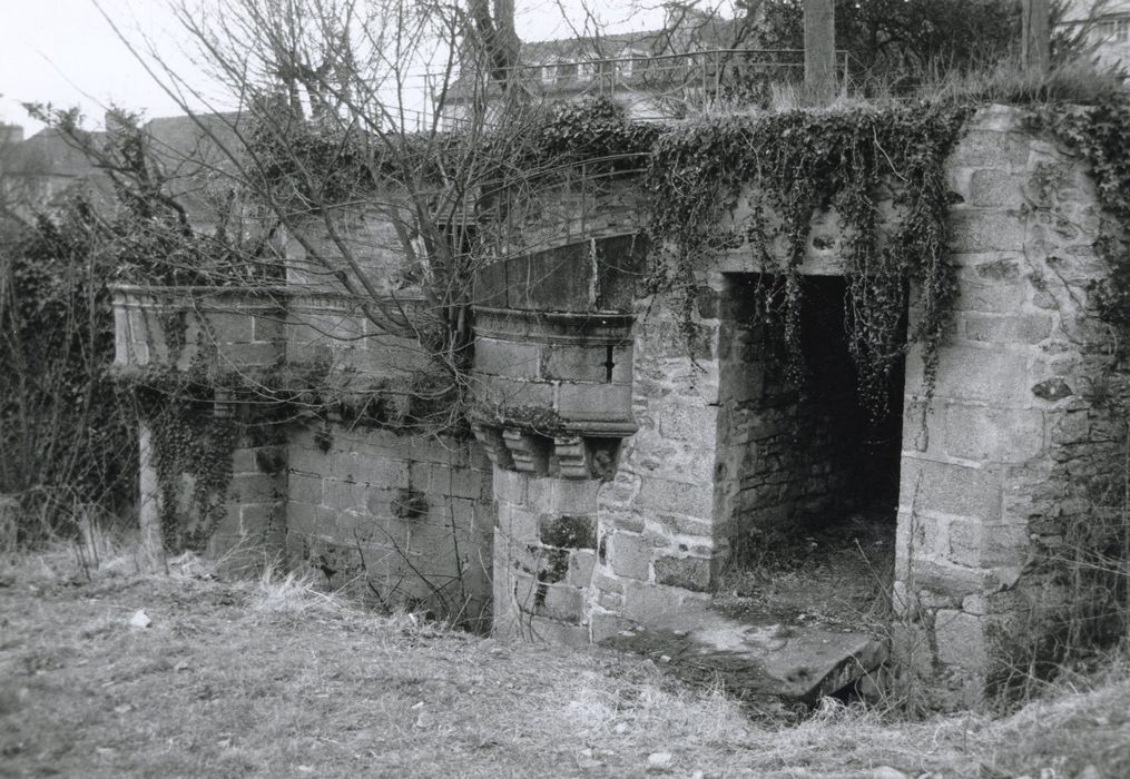 Les vestiges des anciens remparts (trois tourelles) ont été remaniés, semble-t-il, au 19e siècle, en style Henri II, pour en faire un élément décoratif de plaisance en fond de propriété particulière. Une construction cubique en briques avec harpes de pierre aux angles, repose sur un mur de soutènement en granit flanqué de deux tourelles dont le parapet en surplomb repose sur des corbeaux. Plus loin, se trouve une troisième tourelle semblable aux deux premières, reliée aux précédentes par un mur de granit dont la partie supérieure a disparu, à l'exception d'un court tronçon avec trois arcades en plein cintre. Il ne s'agit pas de défenses urbaines, mais d'un décor dont, toutefois, les préoccupations défensives n'étaient pas totalement absentes, ainsi qu'en font foi les meurtrières pour armes à feu qui percent le parapet des tourelles.