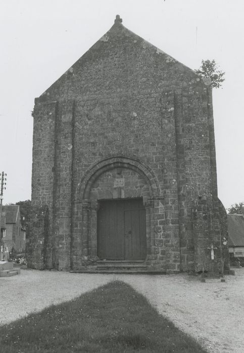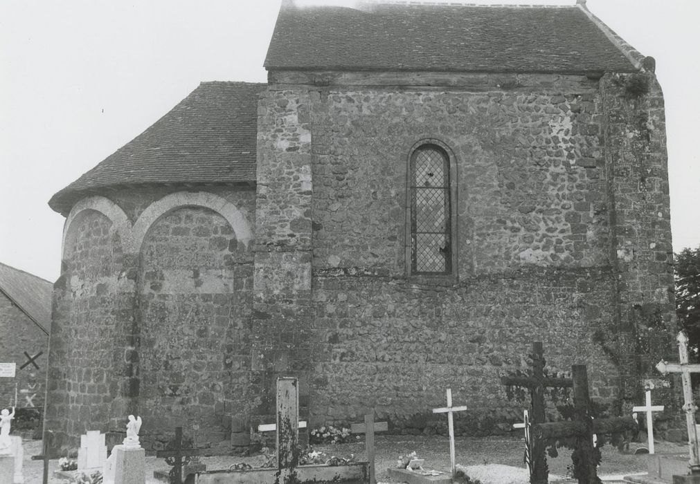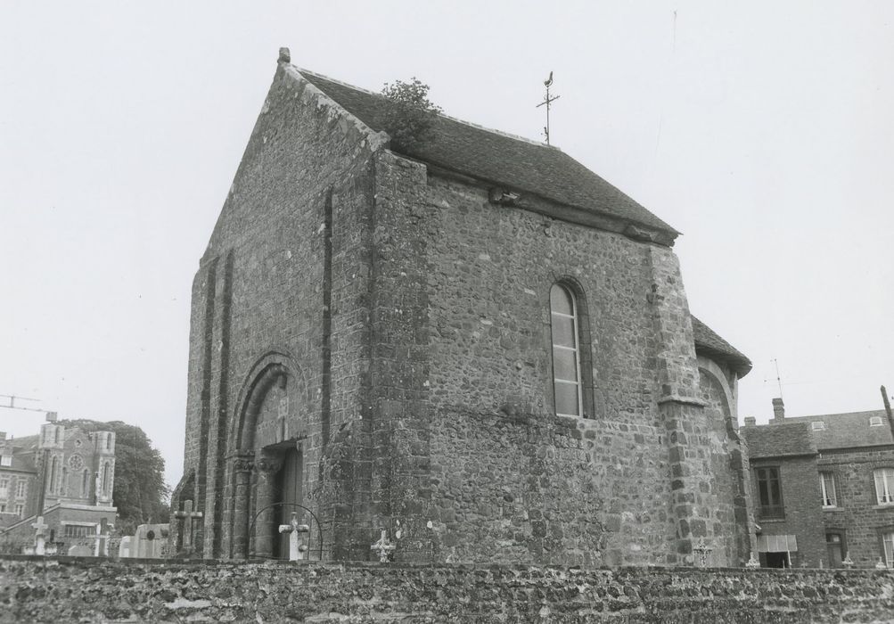 Bâtie entre 1080 et 1093 par Guillaume de Briouze, la chapelle avait la forme d'une croix latine. Des restaurations ont été réalisées aux 15e et 18e siècles. En 1866, la nef a été raccourcie jusqu'à hauteur du choeur, et les transepts abattus. En 1867, le portail roman fut remonté contre ce qui restait de l'édifice. Le portail est formé de quatre colonnes que surmontent des chapiteaux qui présentaient des personnages accroupis, une tête d'homme et une tête d'animal. Dans le tympan des reliefs effacés représentaient un personnage qui serait, selon la tradition, Guillaume le Conquérant. Au centre, sur une pierre calcaire, apparaissent trois personnages sans doute martelés, qui figureraient les saints martyrs Gervais et Protais entourant leur bourreau. £Une absidiole semi circulaire prolonge le choeur. Cinq arcades à plein cintre en font le tour. Des fresques anciennes pourraient orner les murs, cachées sous le badigeon.