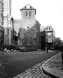 Le projet de construction d'une nouvelle église remonte à 1840. En 1852, le projet de l'architecte Liger est validé. Le choix consiste à implanter le nouvel édifice à côté de l'église ancienne. Les façades font l'objet d'une campagne tardive, de 1895 à 1896. L'édifice affecte un plan classique à croix latine, transept saillant, choeur à déambulatoire et chapelles rayonnantes. Une façade à deux tours, non prévue à l'origine, achève de lui conférer une facture néo-romane. A l'extérieur, jeux d'appareils en alternance granit, calcaire et brique voulant imiter de loin l'effet mosaïque. Le programme décoratif intérieur se concentre autour de la chapelle axiale de la Vierge. La mosaïque est due à Facchina.