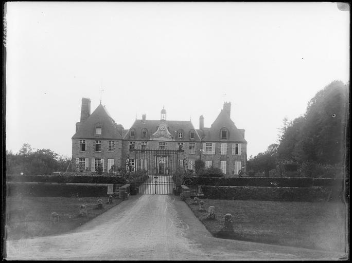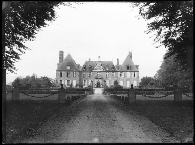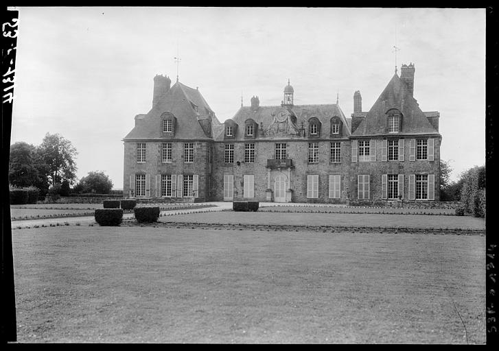 Château construit de 1648 à 1660 à la place d'un château féodal détruit en 1628 sur l'ordre de Richelieu. L'édifice est formé d'un corps de logis rectangulaire flanqué de deux grands pavillons carrés en saillie. Un fronton et un clocheton surmontent la partie centrale. Le fronton porte les armoiries des Rabodanges : écartelé au 1 et 4 d'or à la croix ancrée de gueules au 2 et 3 de gueules à coquilles d'or. Il est accompagné de deux anges tenant un rabot. A l'intérieur, bel escalier de pierre garni d'une rampe en fer forgé. Toutes les boiseries ont été refaites entre les deux guerres. A l'arrière, deux pavillons carrés renferment, l'un l'ancienne chapelle, l'autre l'habitation du chapelain. La chapelle a conservé une partie de son décor peint. Devant le château, les grilles seraient l'oeuvre de Chrétien, grand ferronnier normand.