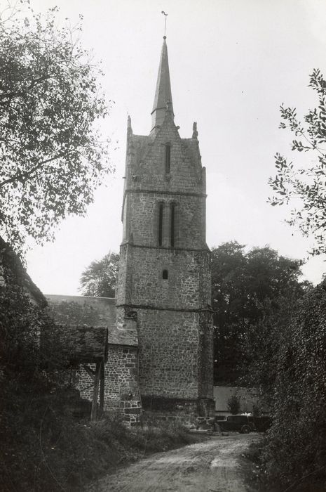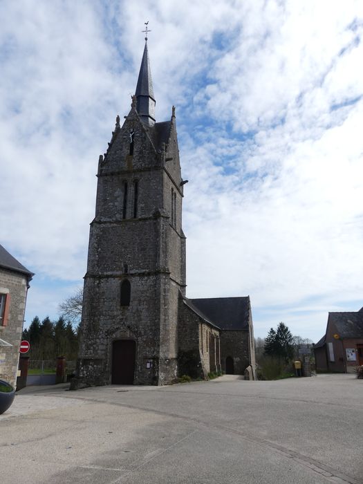 L'origine de l'église semble remonter à l'époque romane. Au cours des siècles, l'édifice a subi d'importantes transformations. Le clocher de style Renaissance présente une tour carrée, surmontée d'un beffroi ajouré sur ses quatre faces de fenêtres jumelées, couronné sur chaque face par un pignon élancé, décoré de crochets et d'une statuette, flanqué à la base de gargouilles et de pinacles. Ces pignons, ajourés d'une étroite fenêtre haute, sont reliés par des charpentes au croisement desquelles s'élève une flèche.