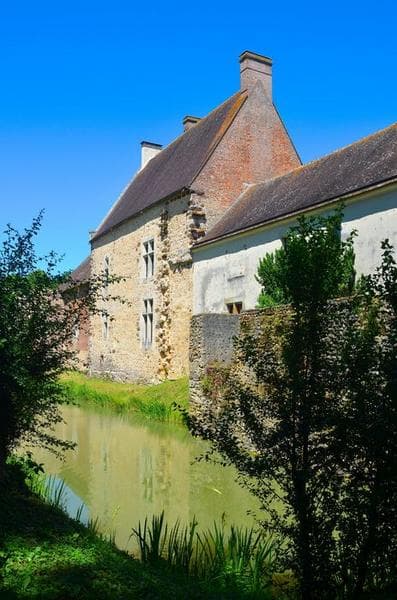 De l'ancien château féodal ne subsistent plus que des vestiges, l'ensemble des bâtiments étant entouré de larges douves. Deux tours rondes défendent l'accès du pont levis qui a disparu, remplacé par un pont en pierre. Ces tours se prolongent par deux petits bâtiments de dépendance. Le logis principal est actuellement scindé en trois parties. La partie centrale a conservé son volume d'origine. Les bâtiments attenants ont été abaissés et tronqués. Ce sont des constructions en brique avec des entourages de fenêtre en calcaire. Le rez-de-chaussée est en brique rose ; l'étage est en briques ocres et brunes s'imbriquant en losange dans les briques roses, de façon à former une sorte de damier.