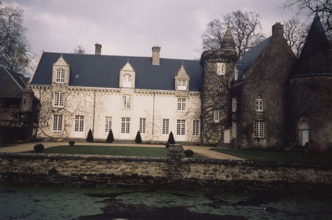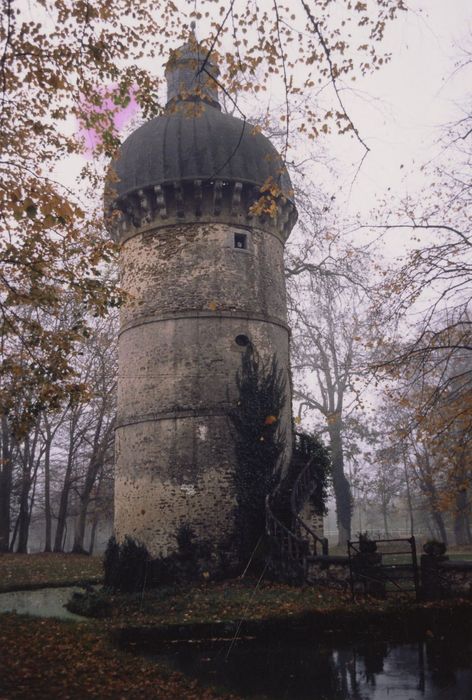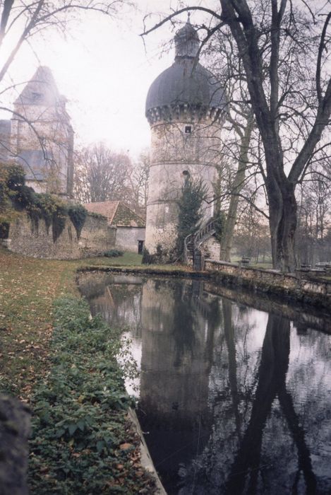 Tour de l'angle nord-est du logis ; tour à l'angle sud-est de la cour ; douves les reliant (cad. F 8) : inscription par arrêté du 19 juin 1991