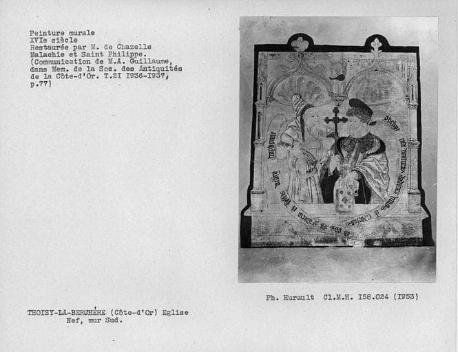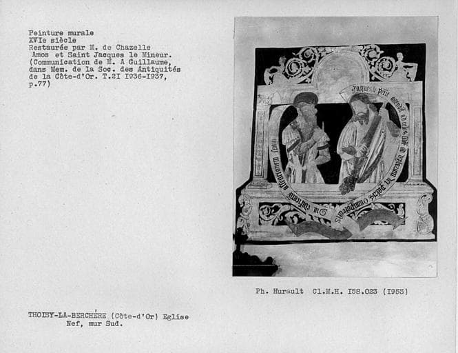 © Monuments historiques, 1992. Cette notice reprend intégralement les termes de l’arrêté de protection au titre des Monuments historiques. Elle répond à l’obligation réglementaire du ministère de la Culture d’établir la liste générale des immeubles protégés (art. R. 621-80 du Code du patrimoine). Elle est donc opposable et fait foi juridiquement. Aucune copie numérique ou papier ne sera fournie par courrier ni courriel. Le dossier de protection complet et l’arrêté sont consultables uniquement sur place, dans la salle de lecture de la Médiathèque du patrimoine et de la photographie (MPP), à Charenton-le-Pont (Val-de-Marne).