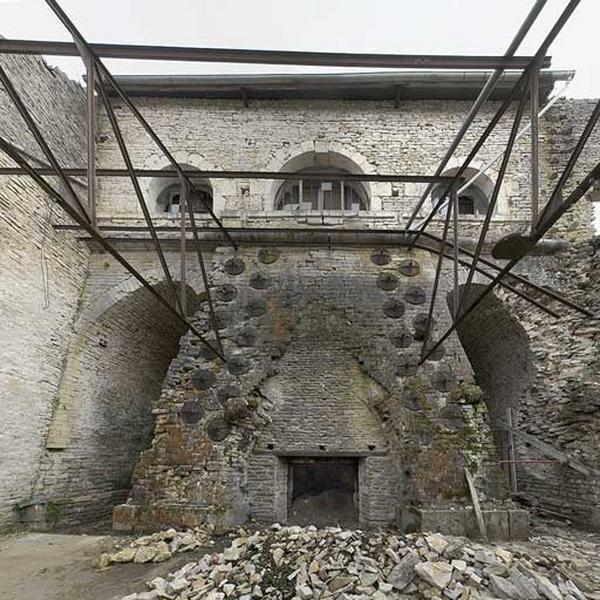 Façades et toitures ; restes du haut-fourneau (cad. AC 66) : inscription par arrêté du 14 avril 1982