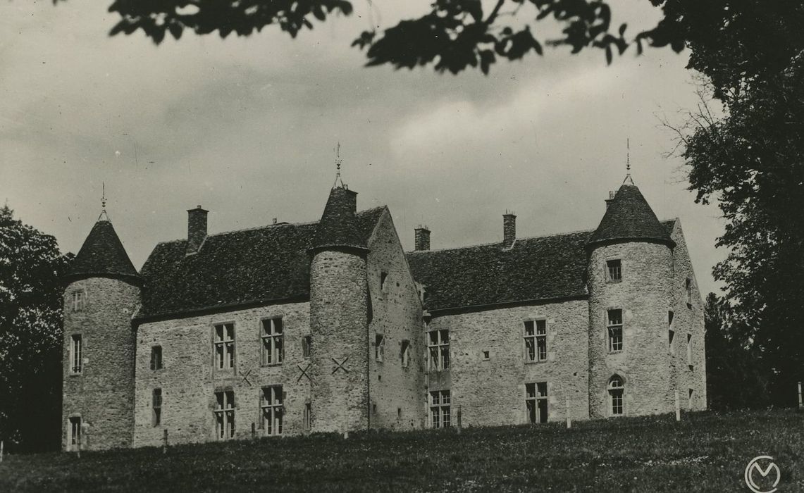 Les façades et toitures ; les caves voutées (cad. B 437) : inscription par arrêté du 7 octobre 1975 - Les communs (écurie - vacherie) , la maison du gardien, le chenil, le colombier, en totalité ; le mur situé dans la cour avec sa tourelle, le puits, le portail et la grille, le jardin et les murs de clôture (cad. B 436 à 438, 440, 441) : inscription par arrêté du 25 février 2002