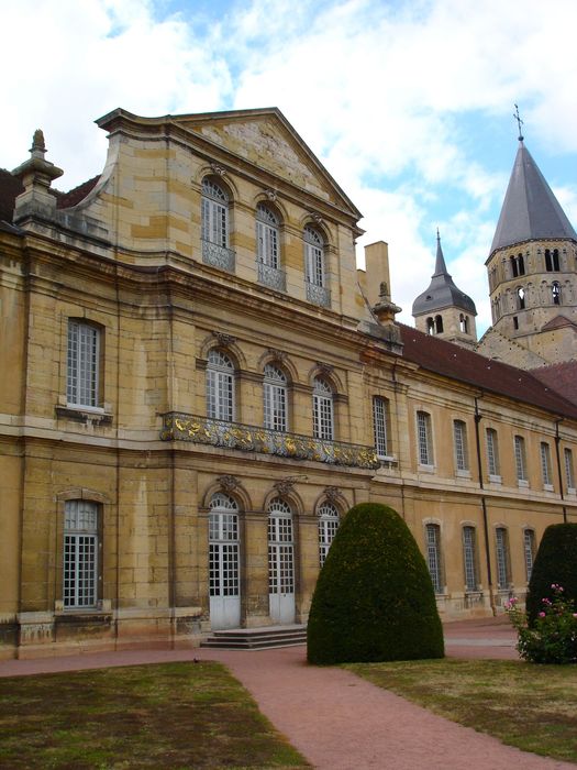 Site de l'abbaye constitué par l'aire anciennement occupée par l'abbaye et les terrains situés au nord, entre son ancienne enceinte et la nouvelle route en construction (RN 80) : site inscrit 25 03 1941 (arrêté). Site archéologique : 71 137 8 AH (Cluny III).
