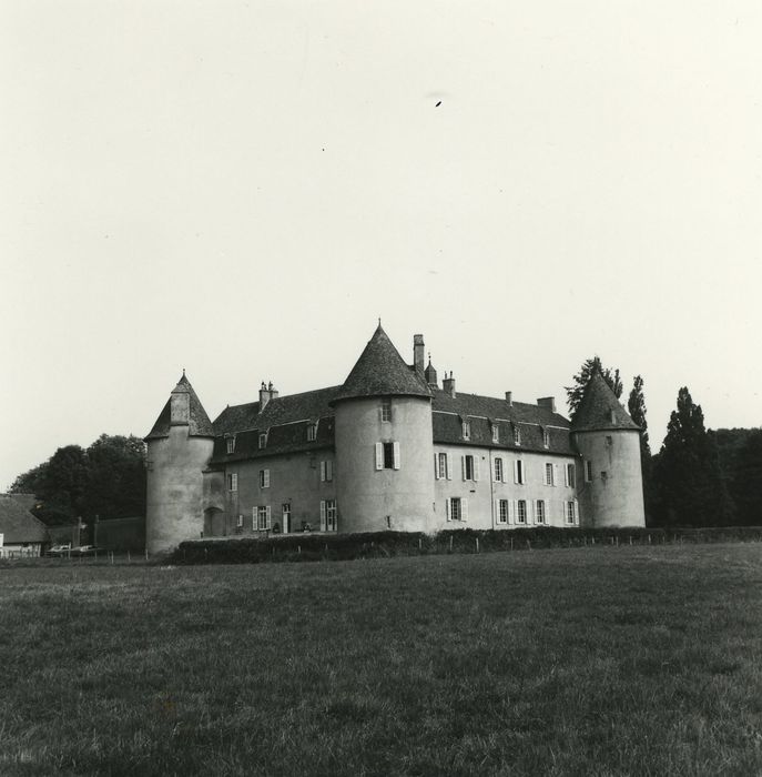 les façades et les toitures des deux bâtiments d'entrée avec leur tour ; le portail d'entrée entre ces deux bâtiments ; les façades et les toitures du corps de logis, de l'aile en retour et de la tour (cad. C 497, 500, 529) : inscription par arrêté du 27 juin 1983