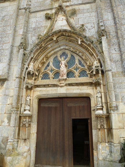 Eglise édifiée à la fin du 15e siècle, représentative des églises poyaudines. De plan barlong, elle se termine par un chevet polygonal et possède une grande unité architecturale. La façade, à pignon unique, a conservé sa statuaire. Le choeur est occupé par un grand retable du 17e siècle en pierre peinte (décor en trompe-l'oeil) , avec un décor en bois. Quelques vestiges de vitraux du 16e siècle.