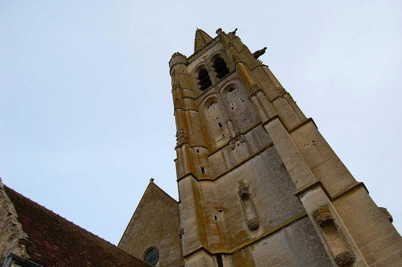Il s'agit d'un édifice dont l'origine remonte aux premiers temps du 12e siècle, mais qui, depuis cette époque, a été modifié, remanié, augmenté et dénaturé. Elle est composée d'une abside demi-circulaire à petite travée antérieure droite un peu élargie, du choeur à deux petites travées établies sur les mêmes lignes latérales, de la nef, plus large, à cinq travées inégales, plus la travée de tribune à l'ouest, et de deux bas-côtés. En avant de la façade ouest, un grand porche couvert forme une salle précédant l'église. La partie la plus intéressante de ce monument est le clocher occupant la première travée du collatéral sud. Cette tour importante de quatre étages sur rez-de-chaussée est couronnée par une haute flèche en pierre avec balustrade à sa base, est du 16e siècle.