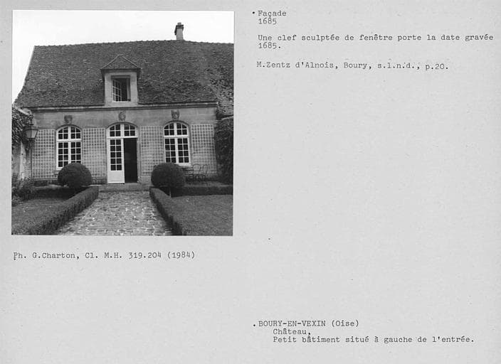 © Monuments historiques, 1992. Cette notice reprend intégralement les termes de l’arrêté de protection au titre des Monuments historiques. Elle répond à l’obligation réglementaire du ministère de la Culture d’établir la liste générale des immeubles protégés (art. R. 621-80 du Code du patrimoine). Elle est donc opposable et fait foi juridiquement. Aucune copie numérique ou papier ne sera fournie par courrier ni courriel. Le dossier de protection complet et l’arrêté sont consultables uniquement sur place, dans la salle de lecture de la Médiathèque du patrimoine et de la photographie (MPP), à Charenton-le-Pont (Val-de-Marne).