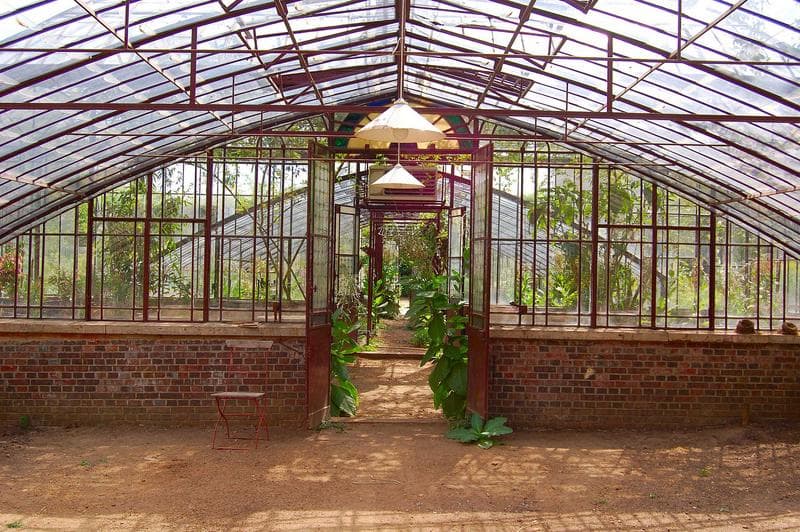 Serre hollandaise rectangulaire, s'ouvrant sur un jardin d'hiver également rectangulaire, armature metallique. Exemple de plus en plus rare de serre standardisée de cette époque.