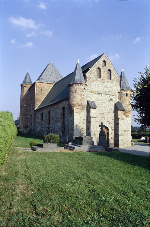 Appartient à la série des églises fortifiées de la Thiérache. Façade occidentale du 14e siècle. Donjon de 1580. Echauguette du début 17e siècle, beffroi de 1633. Modifications au 19e siècle (réalisation des verrières en 1881-1882).