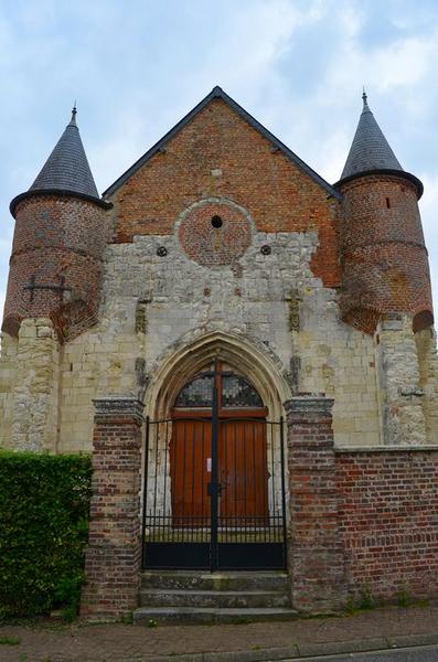 Bâtie en pierre avec de nombreuses reprises en brique, l'église se compose d'une nef précédée d'un portail en arc brisé, flanqué de deux échauguettes de brique. Mais l'essentiel des fortifications a été très concentré sur le choeur. Celui-ci beaucoup plus élevé que la nef, offre du nord et au sud, à la naissance de la nef, deux tourelles, arasées au 18e siècle. En outre, le chevet était autrefois percé de meurtrières : le clocher carré, coiffé d'une flèche octogonale, repose sur le choeur. L'église de Morgny, où les éléments médiévaux semblent avoir entièrement disparu, se caractérise, de ce fait, par une grande homogénéité, sinon au niveau de la mise en oeuvre, du moins au niveau des dispositions défensives. L'ensemble de l'édifice (façade ouest, nef, choeur abritant la salle-refuge) a fait l'objet d'aménagements en ce sens.