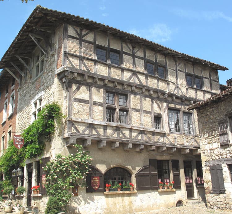 Auvergne-Rhône-Alpes ; Ain (01) ; Pérouges ; place des Tilleuls ; rue de la Halle-au-For