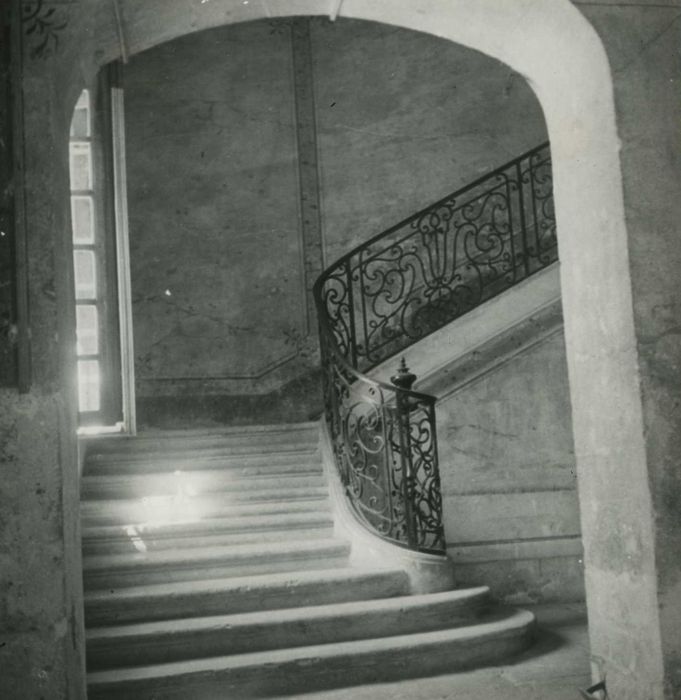 Ensemble des façades et des toitures ; escalier intérieur en pierre avec sa rampe (cad. F 925, 926, 1028, 1032, 1033, 1036) : inscription par arrêté du 19 novembre 1963