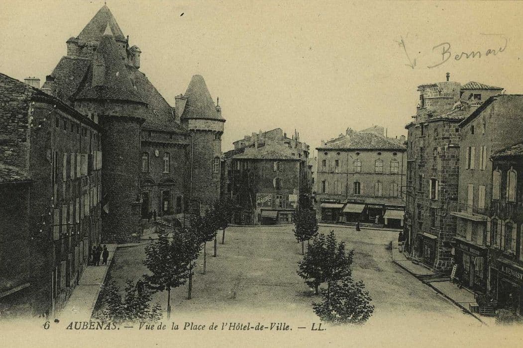 Auvergne-Rhône-Alpes ; Ardèche (07) ; Aubenas ; place de l'Hôtel-de-Ville ; rue de la Prévoté