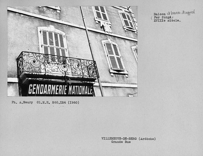 Rampe en fer forgé : inscription par arrêté du 23 février 1931 ; Balcon en fer forgé : inscription par arrêté du 29 juin 1931