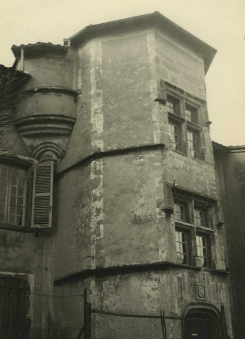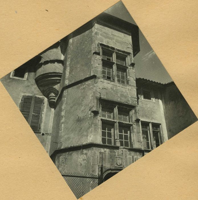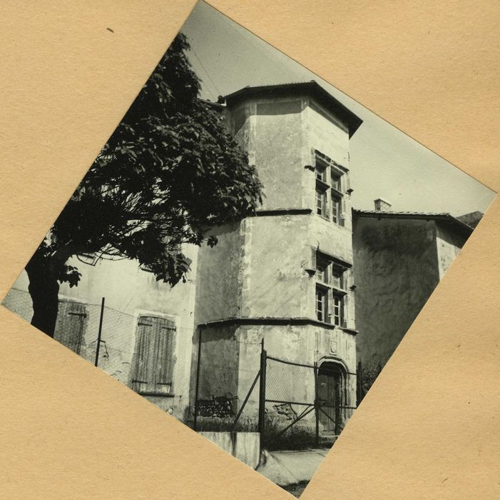 Façade sur rue y compris sa tourelle ainsi que la toiture correspondante (cad. G 957) : inscription par arrêté du 20 juin 1963