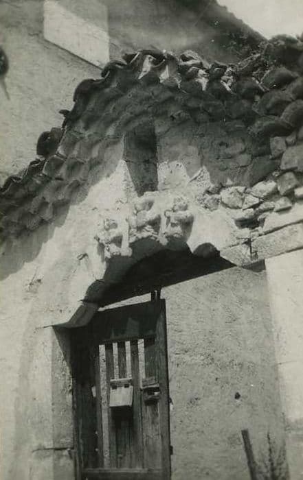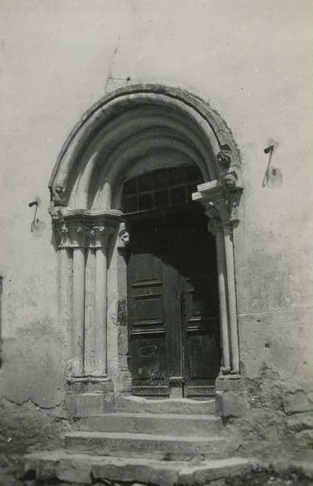 Façade occidentale et la porte avec trois statuettes encastrées, situées dans le prolongement de cette façade : inscription par arrêté du 4 janvier 1934