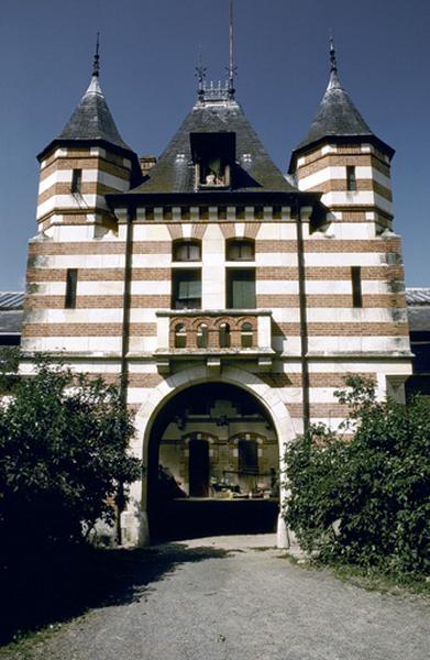 Façades et toitures du château ; grand escalier d'honneur ; bibliothèque à l'étage ; deux salons du rez-de-chaussée l'un appelé salon rouge et l'autre grand salon ; chapelle du château ; ferme-modèle dans le style néo-gothique (façades et toitures et cour intérieure avec verrière) ; façades et toitures du pavillon de gardien à l'entrée principale ; façades et toitures du pigeonnier face au château (cad. ZX 003) : inscription par arrêté du 16 février 1988