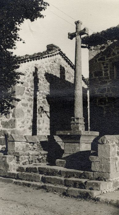 Croix du 16e siècle avec son soubassement et son banc de pierre : inscription par arrêté du 4 juillet 1955