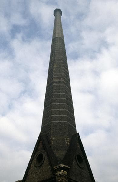 Les frères Marrel, qui disposaient à Rive-de-Gier d'une usine de forgeage depuis 1853, décidèrent au bout de quelques années de construire une usine nouvelle dont la superficie totale allait finalement couvrir 12 hectares. D'immenses bâtiments pour les laminoirs à tôles, pour les blindages, des marteaux-pilons de 25, 50 et 100 tonnes, puis une fonderie d'acier et une aciérie Martin furent construits. De cette vaste usine, seule subsistait la cheminée, lancée en 1867, haute de 108 m, qui fut pendant de longues années la plus élevée d'Europe. Elle comporte un fût octogonal en brique cerclé de fer, inséré dans une embase carrée de 8 m de côté et 16 m de haut. Les parois du fût font 1, 50 m d'épaisseur. Elle est le seul élément protégé se rapportant à la production dans l'usine Marrel. La maison de la famille Marrel est située à Rive-de-Gier, 38, rue du Professeur-Roux.
